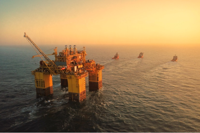 “深海一号”能源站在3艘大马力拖轮牵引下奔赴海南陵水目标海域。(图片来源:中国海油)