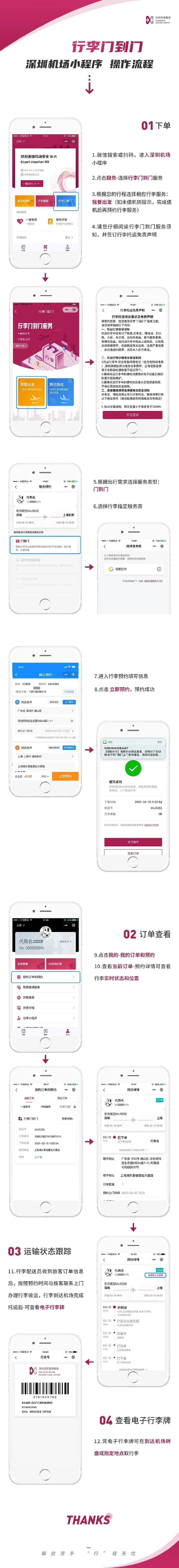 乘坐飞机时托运行李也可以像快递服务一样,上门取件,送件到家了。近日,深圳机场“行李门到门”服务再升级,旅客通过深圳机场小程序可全流程跟踪行李在地面运输、机场保障等环节的状态信息,即日起至3月31日,旅客可免费体验该服务。