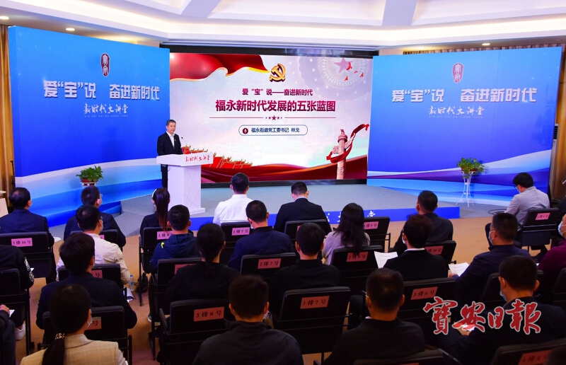 3月11日晚8点,宝安区2021年“新时代大讲堂”第一季——“爱‘宝’说 奋进新时代”系列专题党课第四期开讲,福永街道党工委书记林戈以“福永新时代发展的五张蓝图”为题,从党建、产业、城市、民生、文化等五个方面,讲解了福永街道贯彻落实中央、省、市、区各项决策部署,贯彻落实区六届六次党代会及区“两会”精神制定的《福永三年行动计划》中的主要工作任务,展示了“一年完善、两年变样、三年领先”的福永新时代发展实施路径,昭示了以坚如磐石的信心、只争朝夕的劲头、坚韧不拔的毅力,矢志不渝走好自己的高质量发展道路,全面推进“航港都会、科技之城、凤凰福地”建设的决心和信心!今晚,线上线下共有20.4万人次观看了直播,留言数超过3万条。