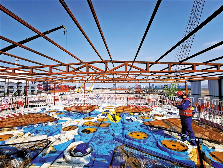 目前,妈湾跨海通道工程盾构机刀盘已进场拼接完成,正在进行刀盘焊接工作,盾构机计划2021年上半年始发掘进;盾构井主体结构施工已完成,左右将进行脚手架拆除,下一步进行始发台施工及延长洞门安装等工作;后配段右线中板全部施工完成,正在进行后配段顶板施工。