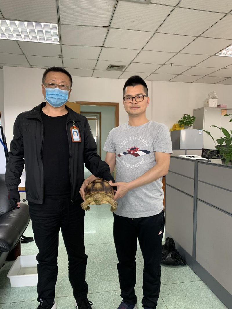 为确保涉案野生动物能得到专业的收容救助,该局接报后高度重视,在案件处理同时第一时间致电市野生动物救护中心,与专业人员取得联系,并协商救助事宜。因苏卡达陆龟为外来物种,需交至深圳市野生动物救护中心基地统一养护,目前已按移交程序与市野生动物救护中心工作人员完成救助收容。
