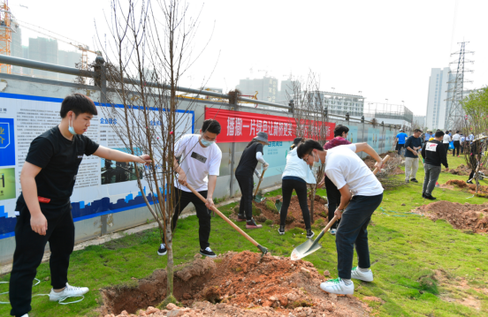 新桥街道干部职工、社会组织、爱心一族、在校师生、志愿者团体植树现场