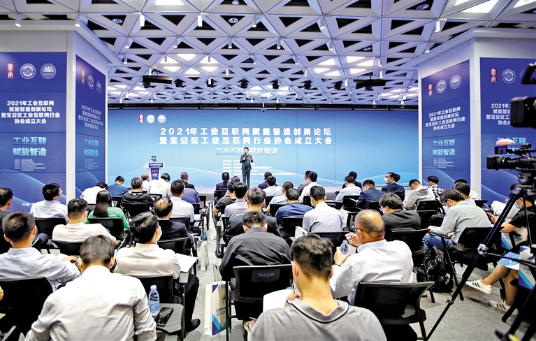3月14日下午,2021年工业互联网赋能智造创新论坛暨宝安区工业互联网行业协会成立大会在湾区新技术新产品展示中心举行。会上,由宝安区工业和信息化局等指导,宝安区52家工业互联网平台企业、服务商企业及应用企业共同发起的宝安区工业互联网行业协会正式揭牌成立。区委常委、常务副区长蔡英权,深圳市工业和信息化局局领导李郑祥,中国信息通信研究院南方分院院长肖雳等出席活动。