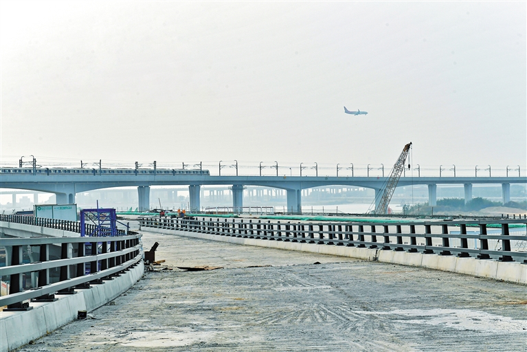 在建设中的广深沿江二期项目现场,桥梁护栏已安装好。