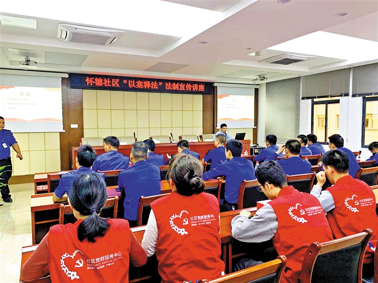 近年来,怀德社区始终将民主法治以及法治宣传教育工作作为开展基层管理与服务的重点来抓,加强组织领导,完善制度保障,以建设“民主法治社区”为载体,以法治宣传教育和法律进社区为切入点,提高社区居民法律素养,促进社区规范化、制度化和法治化建设。