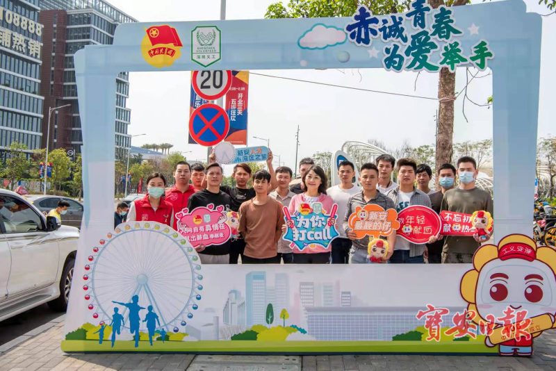 当天的活动以“赤诚青春 为爱举手”为主题,也是学习雷锋月系列活动之一,上午10点,来自新安街道团工委、义工联的青年和志愿者陆续到达位于宝华路P3停车场入口处的献血车,集体参与献血。