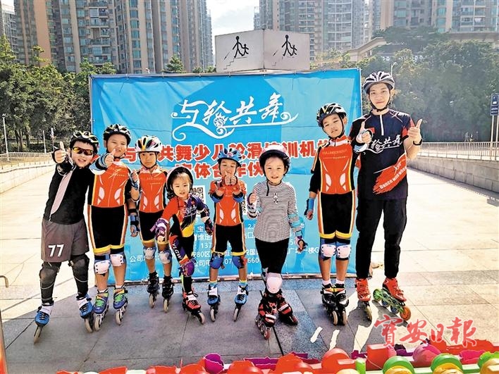 轮滑虽然是一项时尚运动,但是学习过程却是“跌跌撞撞+磕磕绊绊”,不少学员很难迈出第一步,家长更是有所顾虑,生怕孩子受伤。宝体公益培训轮滑项目的主要参与者——深圳市与轮共舞体育文化传播有限公司(以下简称:“与轮共舞”)凭借专业的教学模式,让孩子们勇敢地迈出了第一步,并逐渐爱上了这项运动。“学习轮滑,兴趣最重要,所以我们在教学过程中会穿插各种游戏,让孩子们感受学习轮滑的快乐。”宝体公益培训轮滑班负责人江国顺介绍道。轮滑班的每一名教练都拥有中国轮滑协会颁发的教练资格证书,并且拥有丰富的教学经验。轮滑班的教学主要采取寓教于乐的方式,通过游戏让学员逐步掌握基本的动作要领,大部分学员经过两节课的培训后,都可以独立滑行一段距离。宝体公益培训轮滑班常设在宝安体育馆南门广场,每次上课都会吸引不少家长、学员观摩,欢乐的课堂氛围让孩子们兴奋不已,也受到了家长的广泛称赞。“我家孩子以前被我宠坏了,她是在哪里跌倒就在哪里躺下,我们不扶她就不起来。参加轮滑公益培训后,这个臭毛病彻底改过来了。”软女士告诉记者,她的孩子今年三岁,是班里面最小的学员,虽然学得慢一些,但是表现得非常勇敢,这也让她十分欣慰。