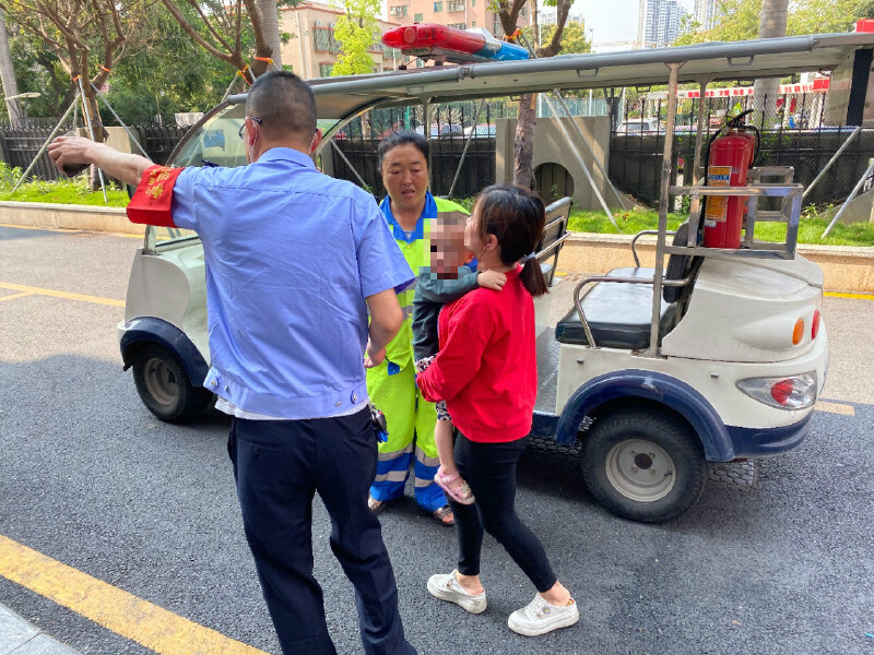 当日下午2时40分左右,松岗街道溪头网格巡查中队网格员陈朗志、梁桂喜、龙尹金驾驶巡逻车在辖区巡查。途径溪头社区西八巷某股份公司门口时,发现上身穿着黑色衣服的一名2岁左右的小男孩在原地转悠。附近一名环卫工人介绍,小男孩在这里徘徊大概十多分钟了,估计是迷路找不到回家的路。网格员蹲了下来关切地询问其情况,可小男孩只是一个劲地摇头,并不回答网格员的提问。