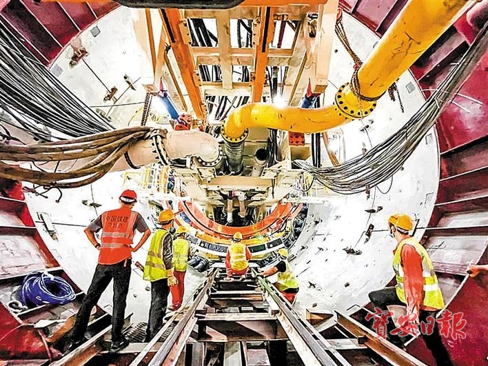 ▲穗莞深城际轨道交通深圳机场至前海段工程区间右线首环管片拼装顺利通过验收。