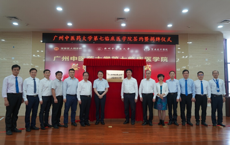 深圳市卫生健康委党组成员、一级巡视员罗乐宣,广州中医药大学校长王省良、副校长刘中秋,宝安区副区长李懿等参加了揭牌仪式并为“广州中医药大学第七临床医学院”揭牌。