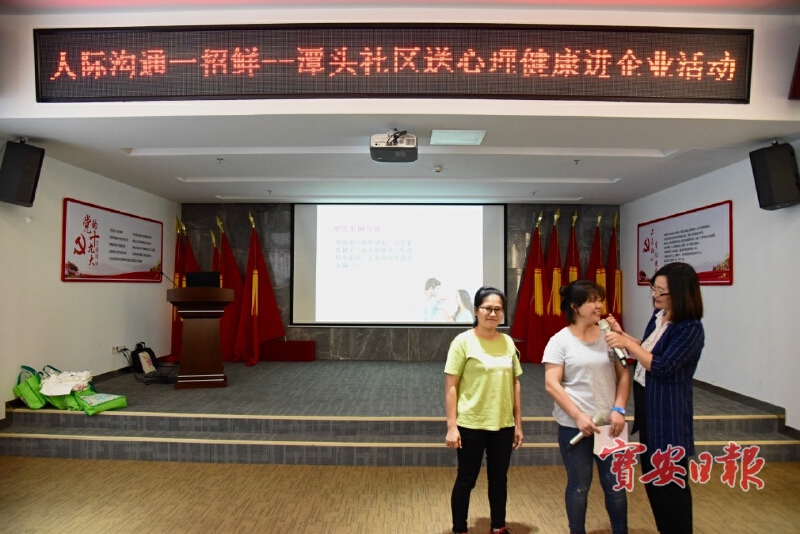 3 月18日下午,松岗街道潭头社区妇联联合温馨社工和心理咨询师一起来到健仓科技园,为新入职的六十多名职场新人送来了“人际沟通一招鲜”心理健康知识讲座,受到大家的欢迎。