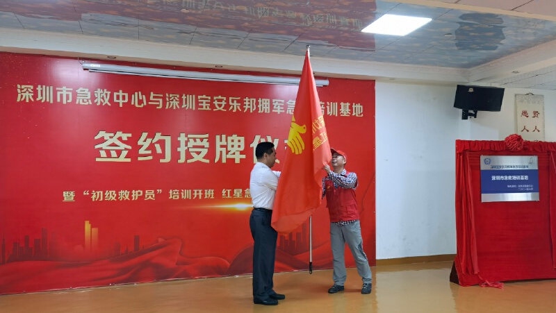 3月19日,深圳宝安乐邦拥军急救培训基地在宝安区“全国爱国拥军模范”拥军培训基地揭牌,标志着全市首家社会急救培训基地成立。市、区有关部门负责人为基地揭牌,并为宝安区退役军人事务局组织设立的红星急救志愿服务专业队授旗。