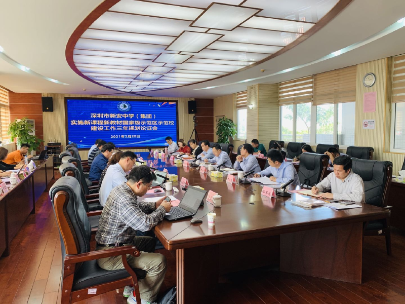 3月20日,新中集团在全市率先举行新课程新教材国家级示范区示范校建设规划论证会,北京市教育科学研究院副研究员、博士后韩宝江,深圳市教科院副院长、博士潘希武,深圳市教科院高中教研中心主任、特级教师龚湘玲,宝安区教科院院长彭茂发,扬州市新华中学校长、特级、正高级教师张晓林,常州市高级中学副校长、博士、特级、正高级教师汪明,中国教师报课程周刊主编韩世文,上海市虹口区教育学院教授汤立宏,新中集团领导高妙添、黄挺、金海淑、袁卫星、谢芳青,高中部领导及相关处室负责人出席论证会。新中集团党委专职副书记黄挺主持论证会。