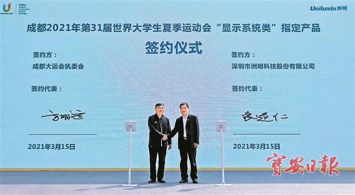 活动现场,除知识产权保护主题宣讲外,还举行了隆重的签约仪式。洲明正式签约成为成都大运会“显示系统类”指定产品供应商,将为成都大运会执委会提供包括显示系统、LED会议一体机等产品及解决方案与技术保障服务。