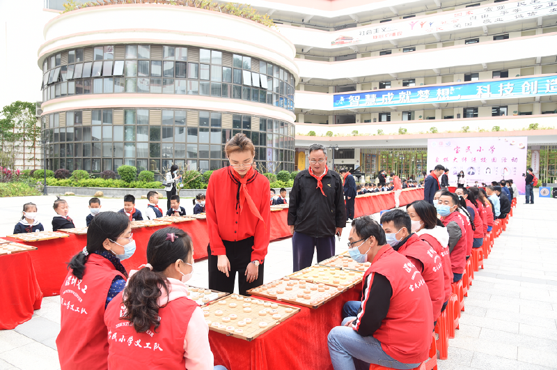 此外,5 名女子象棋大师、河南省棋类协会青少年发展委员会主任党俊、象棋大师党斐还现场与宝民小学师生、家长上演了“校园百人车轮战”,气氛十分热烈,小棋手们的精彩表现也令唐丹印象深刻,“很开心能够来到宝民小学与小棋手们交流,希望他们像象棋里的‘卒’一样,能勇往直前地往前冲。在感受象棋中的技战术和大局观的同时,对象棋这项中国古老的传统文化也能有所了解。”宝安区教育科学研究院院长彭茂发对本次活动给予了高度评价。