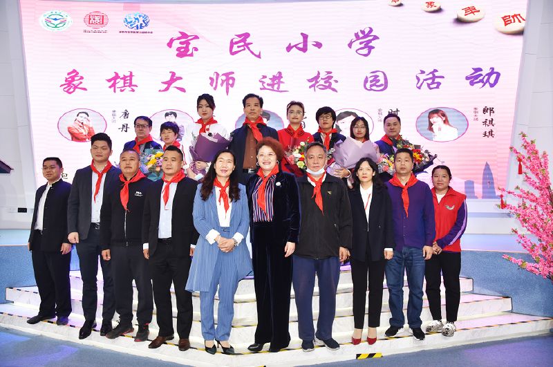 今天上午,刚刚结束“宝安杯”女子象棋明星邀请赛的5位象棋大师来到宝安区宝民小学,与宝民小学师生亲切交流。