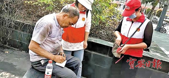 ▲福永义工发现迷路的老人后热心询问并提供帮助。