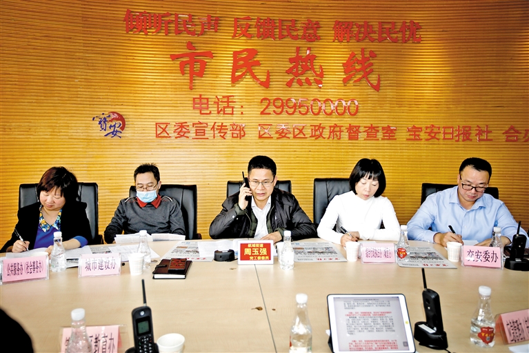 24日上午,航城街道相关负责人带队接听热线,回答市民提问。