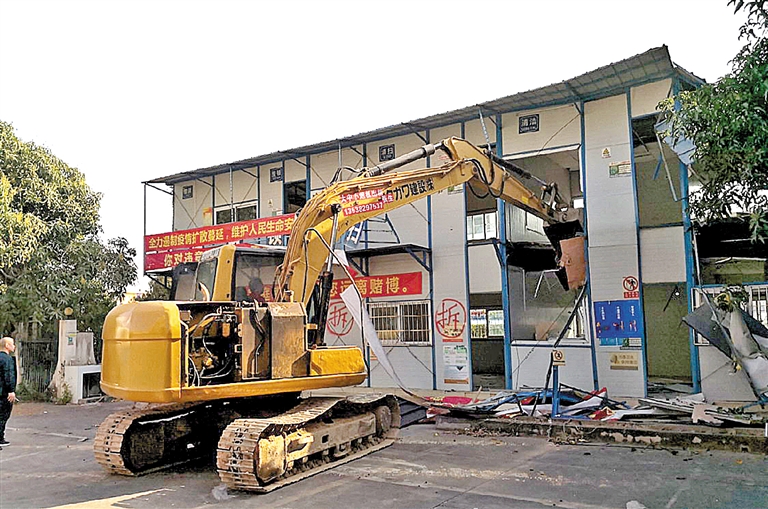 3月24日,沙井街道出动执法人员和工人,对沙井公园北侧的临时板房进行清拆。