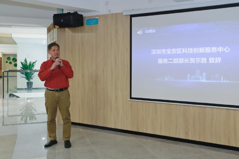 区科技创新服务中心部长贺尔胜在供需会上致辞