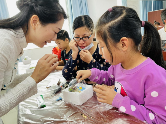 此次微景观亲子手工主题活动开展,增加了家庭成员间的亲密度,加深了亲子间的互动和感情,让居民体验到“指尖植树”创造美的乐趣。活动增强绿色健康生活的理念,促进亲子家庭在社区共建、共治、共享中发挥积极的作用,促进家庭发展,共建和谐社区。