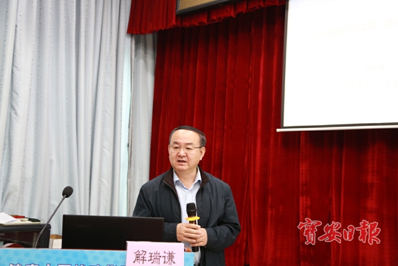 ▲国家卫健委中国健康教育中心信息管理部主任解瑞谦在作主题演讲。