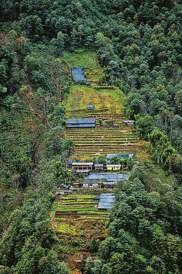 ▲“挂”在山腰的村庄。