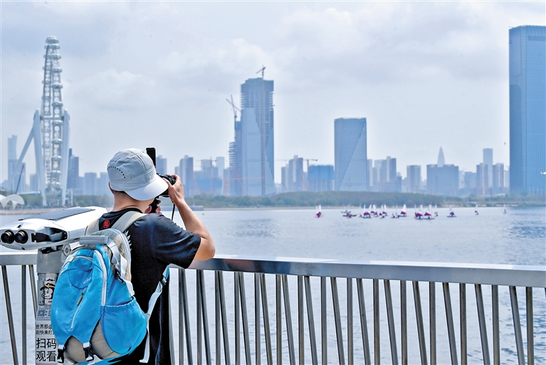 清凉的海风,泛着或悠扬婉转或动感欢愉的音乐旋律,昨日,来滨海文化公园休闲散步、观看帆船邀请赛的市民络绎不绝。宝安是一座滨海之城,市民对于大海、对于水上运动的亲切感与生俱来。“听说有帆船赛,特意过来看看”“比赛什么时候开始啊”“宝安第一次举办帆船赛事,不容错过”……当天的宝安湾畔,甚是热闹。