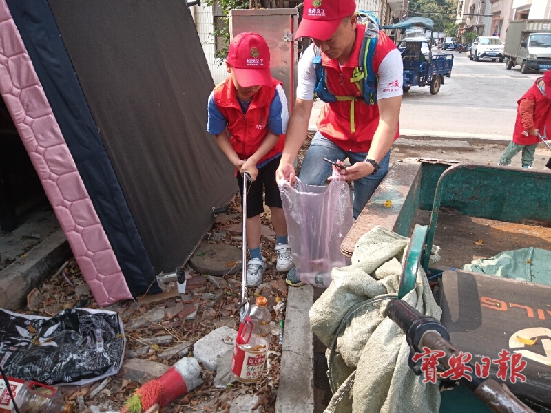徒步清洁中,大小义工分工协作,清理道路两旁的垃圾,捡拾绿化带中的烟头、果皮;从公园走道到城中村小路,从城中村小路再到主干道人行道,每个义工都能够积极参与,发扬不怕脏、不怕累的雷锋精神。
