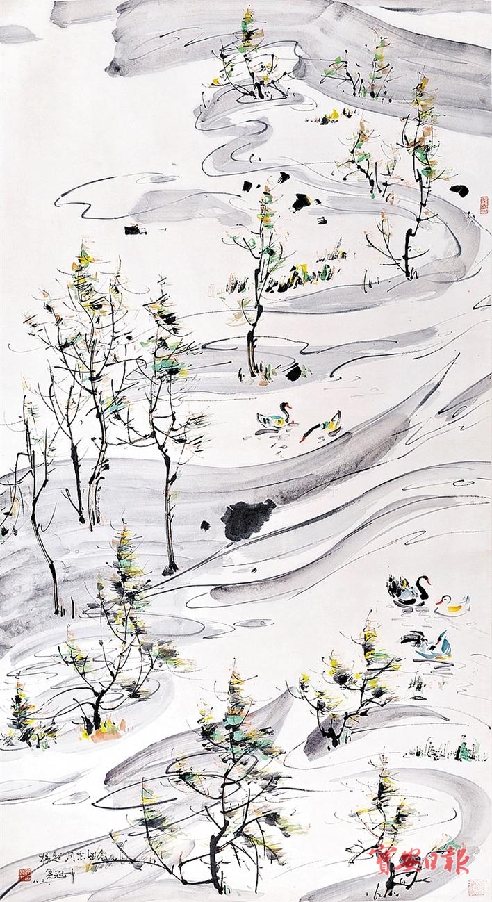 国画大师吴冠中作品《春江水暖》。