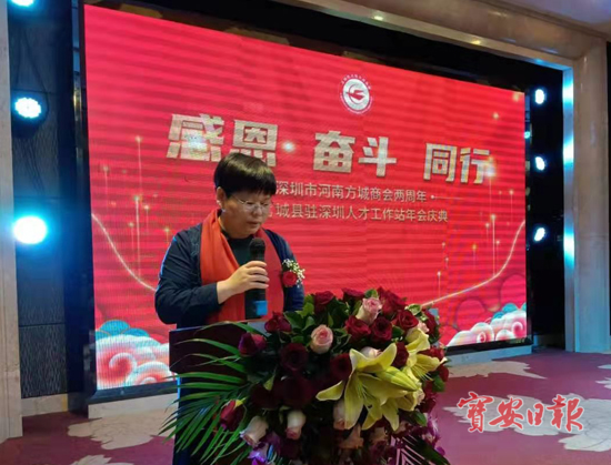 3月28日下午,深圳宝安区前岸国际酒店温馨祥和,深圳市河南方城商会成立两周年暨方城县驻深圳人才工作站成立一周年活动在这里隆重举行。来自大湾区的方城籍老乡和兄弟商会商协会的代表、商会会员等180余人参加了活动。河南省方城县委副书记、县人民政府县长李霞,西乡街道党工委委员李金宇等领导莅临活动现场。