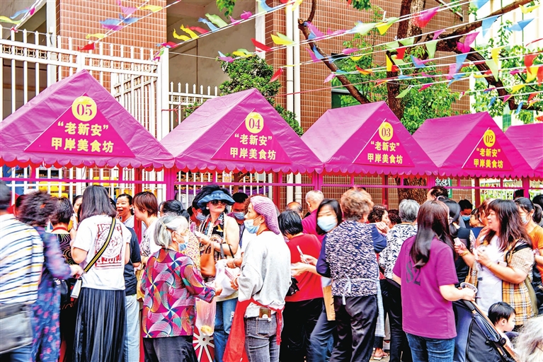 秀色可餐的香芋角、应景应节的艾果、香气扑鼻的菠萝包……3月30日下午,新安街道甲岸社区2021年“老新安,甲岸味”美食节在甲岸旧村7区活动广场举行。