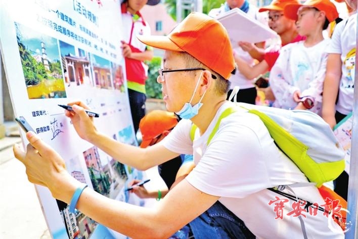 宝安区历史文化定向越野大赛以凤凰古村历史文化为探索主线,设立私塾书室、公祠、古井为定向打卡点。40个家庭共分为5支队伍化身为宝安区的历史文化探索的使者,根据任务地图完成汉字英雄、共筑古城、博古望今、历史“答”人和成语状元等趣味打卡任务,开启“鹏城历史宝库”,共同探索凤凰古村的历史遗迹。