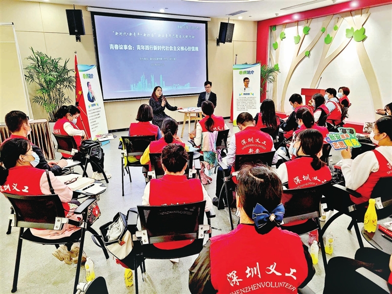 首期活动,新安邀请深圳改革开放干部学院教育长、教授宫正和中共中央党校杨海波博士作为主讲嘉宾,为青年志愿者精讲党史,坚定理想信念。宫正生动讲述了党史、新中国史、改革开放史、社会主义发展史等,并以“青年读书会”为载体,分享了《习近平的七年知青岁月》读书体会,鼓舞青年志愿者们在新时代拼搏进取、有志有为。杨海波通过“青年议事会”平台,以“青年践行新时代社会主义核心价值观”为主题,联系现实生活,与大家深入交流。与会人员积极分享亲身经历和体会,展现了新安青年奋发有为、爱心奉献的精神风貌。