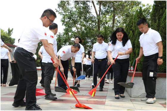 现场,党员群众向革命烈士默哀、鞠躬,向革命英雄敬献花篮、祭拜烈士,并在烈士纪念碑前进行履职宣誓。随后,党员群众分成四组清洁烈士墓园地面树叶、胶袋等杂物。