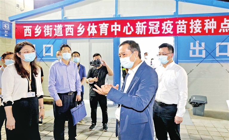 “要做好宣传和组织工作,引导市民高效有序接种新冠疫苗,筑牢疫情防控严密防线。”4月1日晚,区委书记姚任和区委副书记、区长王立德分别率队到西乡、新安检查新冠疫苗接种和安全生产工作,姚任要求卫生健康部门和街道做好宣传引导,号召市民对新冠疫苗要应接尽接。