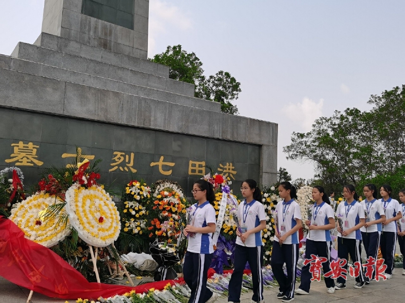当天上午十时,100余名党员、团员、少先队员及志愿者来到洪田七烈士纪念碑前集结,依次有序向烈士敬献画圈,并搽拭墓碑。随后,全体人员集体默哀。在党旗、团旗、队旗下,全体人员集体宣誓。“烈士的丰碑昭示着今天生活的来之不易,此次在清明节前夕举办祭拜先烈主题活动,主要为了弘扬勇于担当、无私奉献的伟大精神,踏着前辈足迹,传承红色基因,为全力奋进社会主义现代化建设新征程贡献青春力量,以优异成绩庆祝中国共产党成立100周年。”松岗街道团工委主要负责人表示。