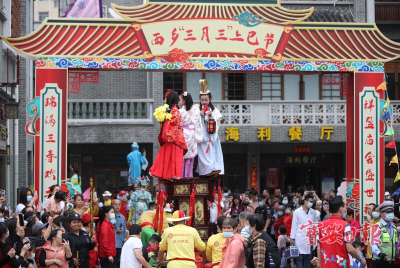 4月9日,第三届宝安区民俗文化节——2021年西乡街道“三月三”上巳节热闹开场,汇景巡游作为“重头戏”,吸引了众多市民、游客观看。区委宣传部常务副部长王妍霞、西乡街道党工委书记龚建荣、宝安区文化广电旅游体育局副局长孙箫韵等领导参加活动。