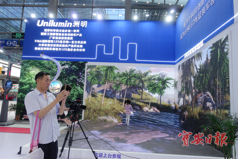 记者现场还看到,洲明科技在展位中设置的XR沉浸式体验区吸引不少参展市民体验拍照,三块电子显示屏组成一个沉浸式场景。记者体验后发现,站立其中构成的影像画面仿佛置身原始丛林,画面生动立体,别有一番趣味。据了解,作为国内领先的LED应用产品与方案供应商,洲明科技获国家科学进步奖一等奖、国家工信部制造业单项冠军产品、广东省政府质量奖等荣誉,还与FIBA国际篮联、大运会、曼城足球俱乐部达成合作。