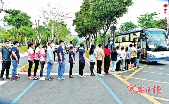 为做好新冠疫苗接种工作,守护辖区内群众的身心健康,节省市民宝贵的时间,减轻企业负担,增加接种疫苗人数,新桥街道每天租赁10多台大巴,加派人手维持秩序,有序组织社区群众和企业员工进行接种,确保新冠病毒疫苗接种工作顺利进行。