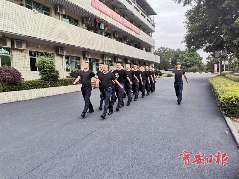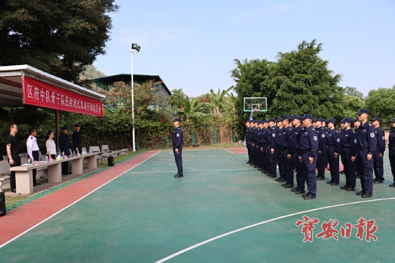 4月12日,宝安区机关事务管理局联合翻身派出所在宝安区政法基地组织区府中队骨干队伍封闭式军训动员大会。