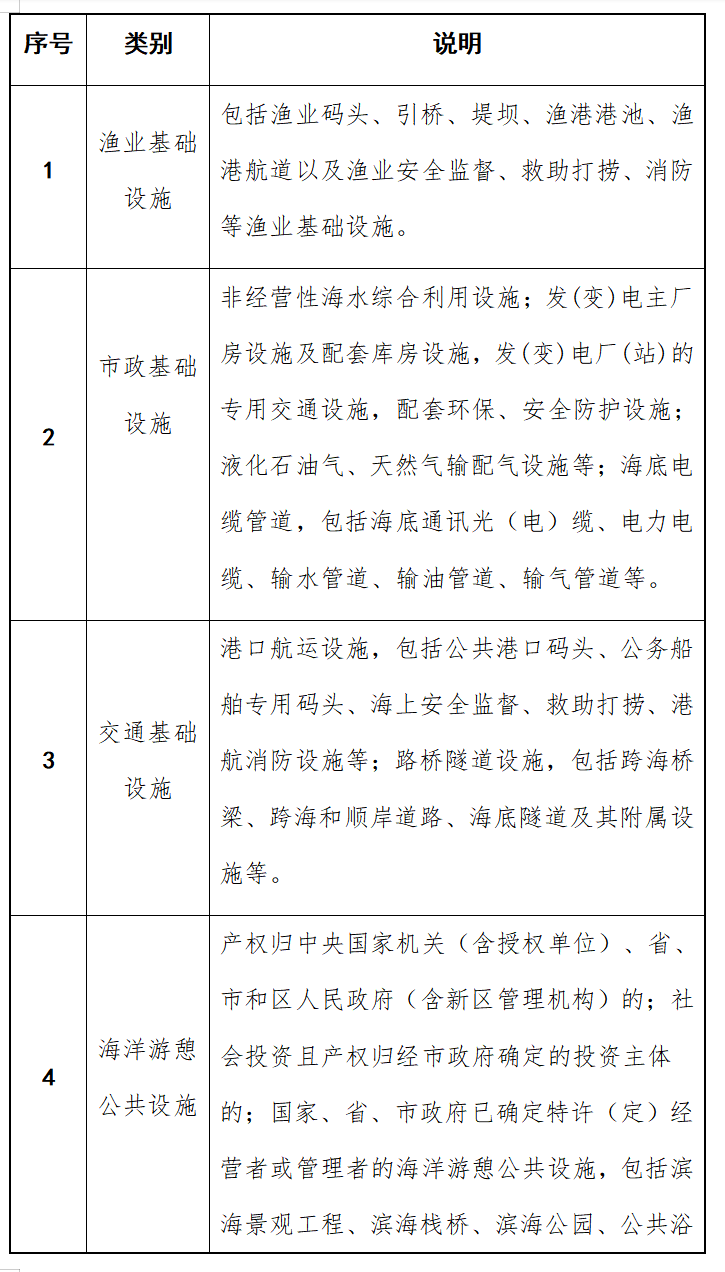 据悉,为进一步规范用海审批行为,根据《中华人民共和国海域使用管理法》和《深圳经济特区海域使用管理条例》等规定,深圳市规划和自然资源局制定了该目录,并经深圳市政府批准,印发施行。自2021年3月18日起,凡深圳市行政区域内,属于目录中所列的渔业、市政、交通和海洋游憩等公共设施项目、重大建设项目,可以通过申请批准方式出让海域使用权。