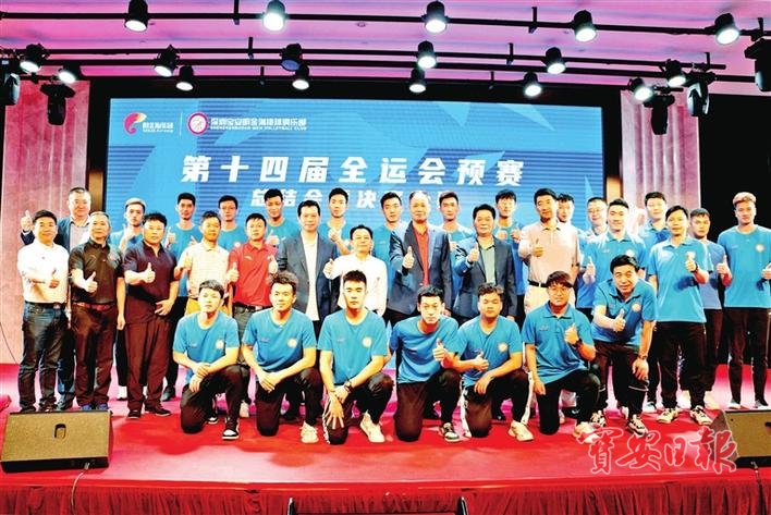 广东男子排球队是我国排坛历史上的一支老牌劲旅,为国家队培养了一大批著名国手。2019年9月,在明金海集团的大力支持下,以广东男排为主体组建的明金海排球俱乐部正式落户宝安,球队于同年斩获全国男子排球锦标赛季军,时隔42年重回全国男排前三行列。第十四届全运会男排预赛于4月6日-11日进行,代表广东出战的深圳宝安明金海男排凭借不畏强敌、每分必争的精神,从强手如林的比赛中顽强突围,提前获得出线名额。以八强身份时隔34年再次闯入全运会正赛。今年8月,球队将前往陕西西安参与正赛角逐。