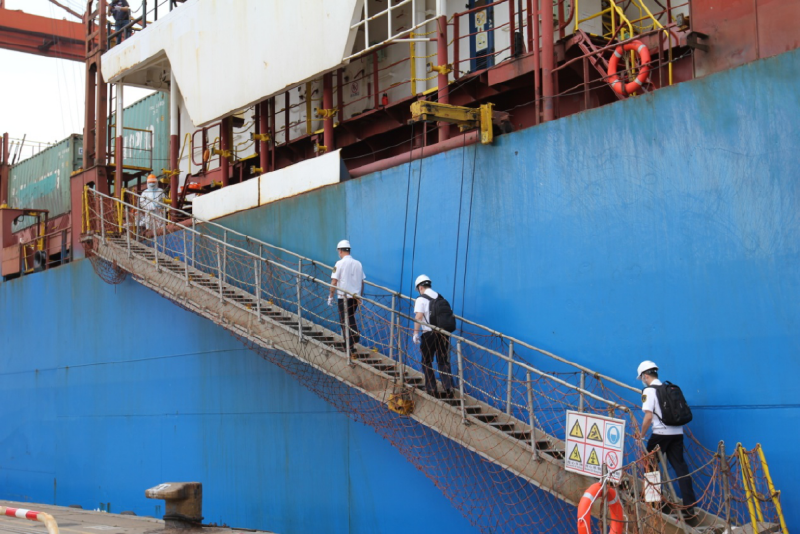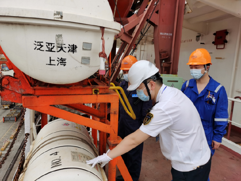 4月20日,在深圳大铲湾码头,海事部门对所属公司注册地在上海的大型集装箱船“泛亚天津”轮试点实施了国内首次船舶就近审核。在对该轮进行了8个小时的现场审核后,审核组当场向该轮签发了“船舶安全管理证书”继续有效的中间审核签注,这标志着国内船舶审核发证率先实现了“深圳可办、全国通办”。