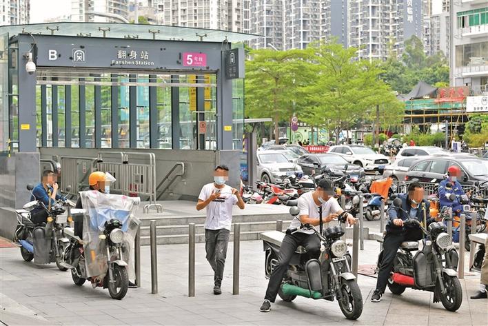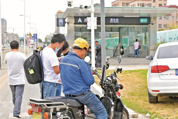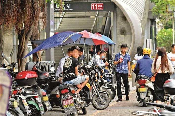 福永地铁站C出口,有不少非法营运电动二轮车聚集。