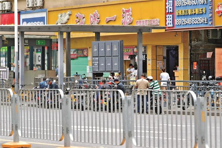 松岗公园地铁站B出口,拉客人员等待生意上门。
