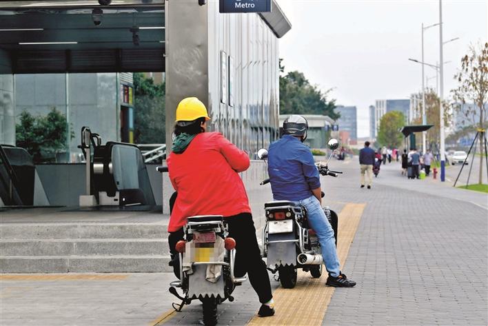 记者在各街道地铁站看到,电动二轮车聚集现象明显,或是占据了人行道、或是直接在机动车道上候客,有些出口甚至被一排车辆堵住,每当有市民经过,拉客人员或吆喝或鸣喇叭,以吸引市民乘车。希望广大市民拒绝搭乘载客电动二轮车,别把自己的生命安全交给屡屡违章的拉客人员。