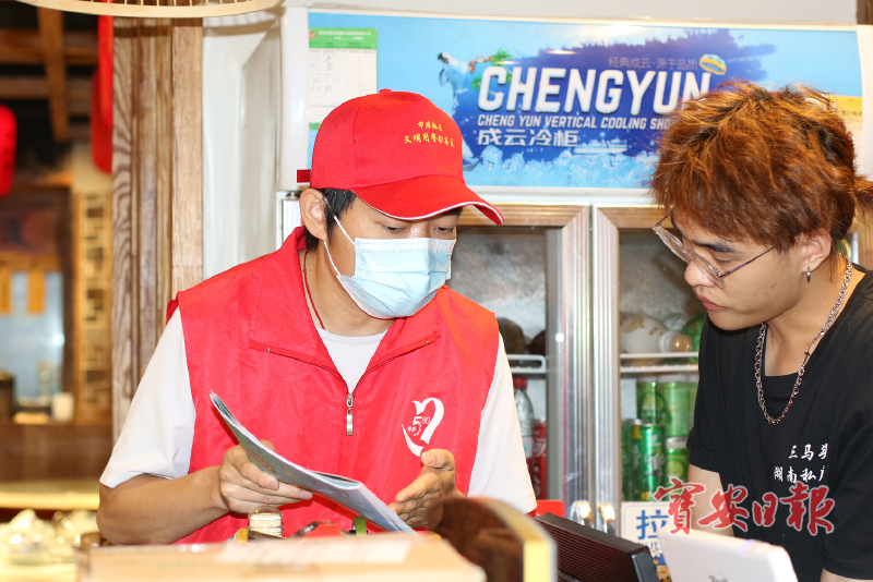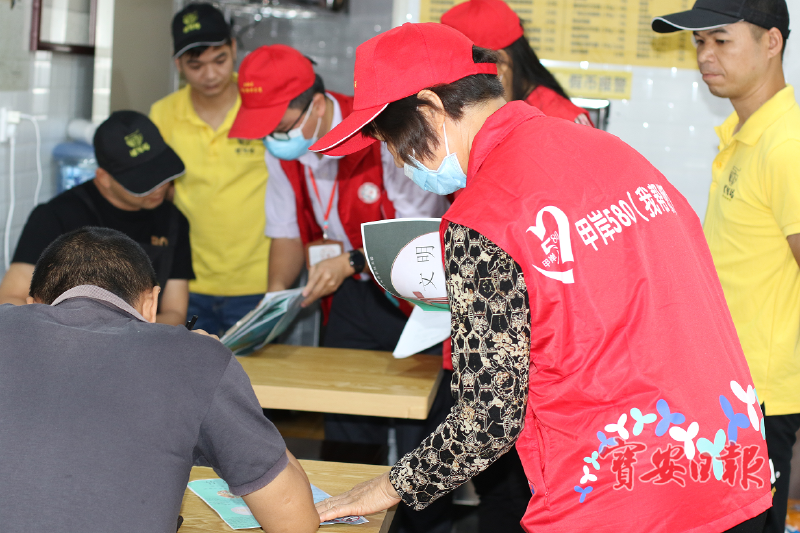 ▲甲岸“文明用餐劝导员”志愿者服务队伍开展行动