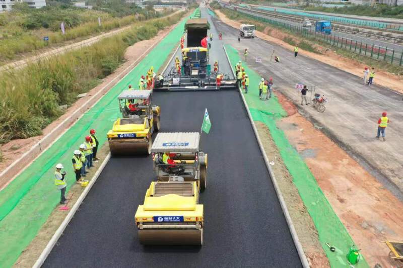 4月20日下午2时,广东省交通集团所属深汕西高速改扩建项目坪山高架路段辅道路面工区现场摊铺机、压路机轰鸣,伴随着最后一车沥青混合料碾压完成,项目首段沥青下面层试验段顺利完成,为后续大规模沥青路面施工及首次交通转换的如期进行奠定了良好的基础。