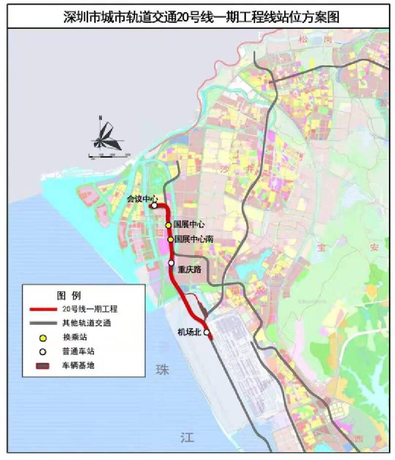记者获悉,深圳地铁20号线一期工程长约8.43千米,设5座车站1个车辆段,连接全球最大的深圳国际会展中心和宝安国际机场,线路起于机场T4航站楼(规划),终于会议中心站。